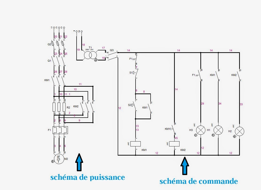 Chaque enroulement doit alors se retrouver entre deux phases différentes. Demarrage rotorique 2 sens 2 temps. Nous maintenons l’alimentation du moteur par le biais de km2, km1 est remplacé par km2 qui assure le couplage du moteur en triangle. Ces notices sont en accès libre sur internet. 1 شباط (فبراير) démarrage par élimination de résistances statorique شرح دائرة تشغيل محرك.